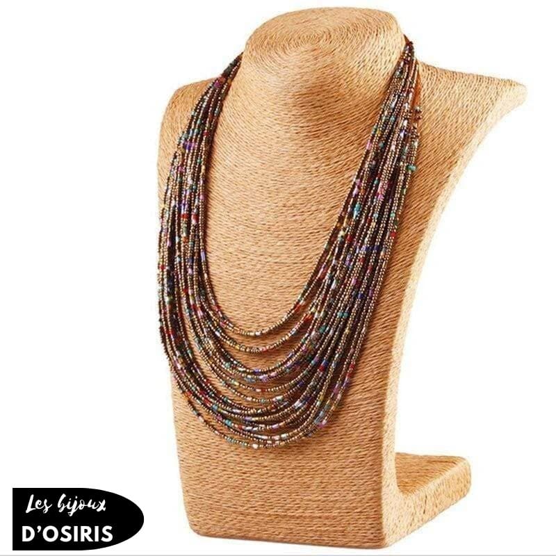 Rouge Bleu turquoise Noir Blanc Rose Marron Chaque collier arbore des touches subtiles de couleurs contrastantes. Par exemple, le modèle blanc inclut des perles dorées, ajoutant un raffinement supplémentaire et une profondeur visuelle à votre bijou.